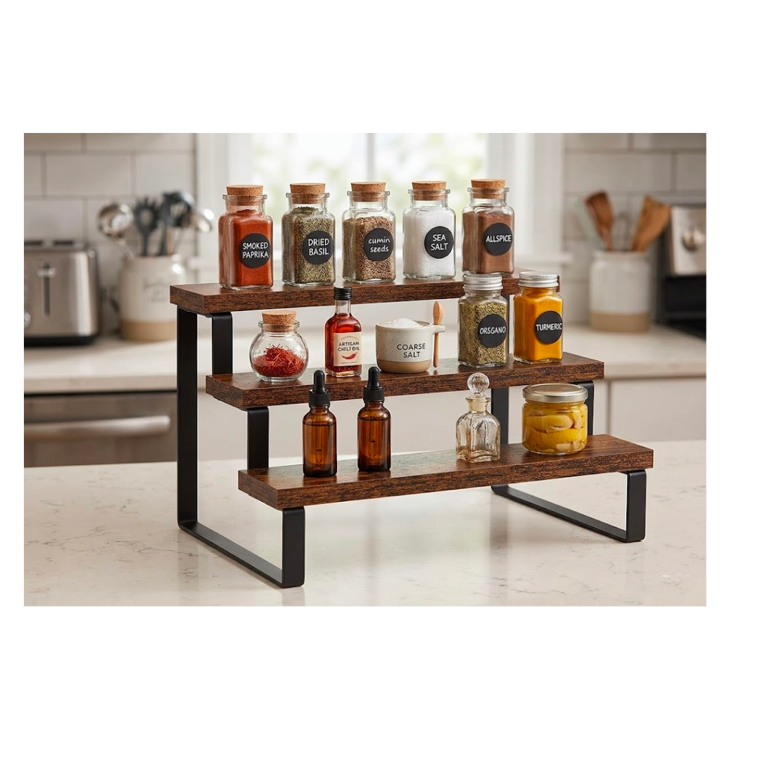 29cm x 23cm x 12.2cm Stainless Steel & wooden Storage Shelf