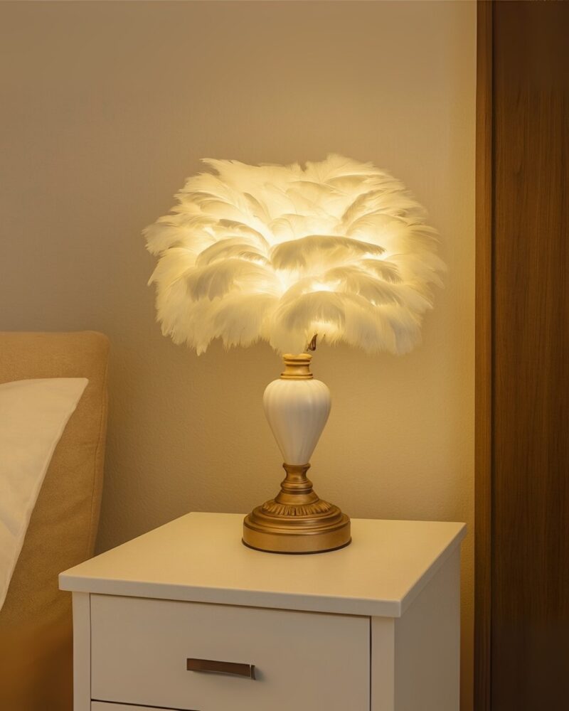 30cm x H40 table electric lamp (iron + feather + ceramic)