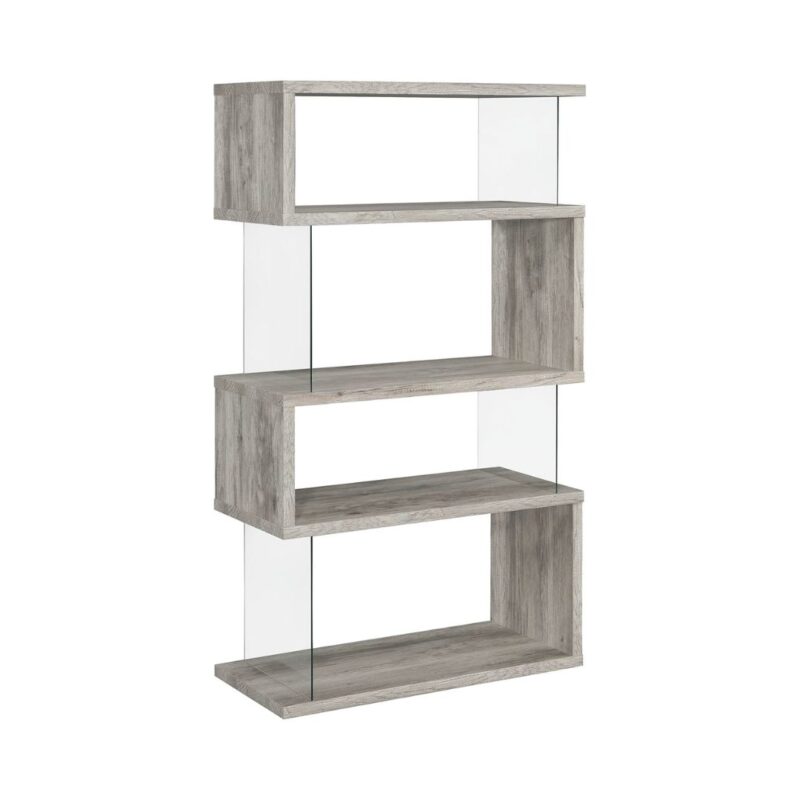 Emelle 63-inch 4-shelf Glass Panel Bookshelf Grey Driftwood